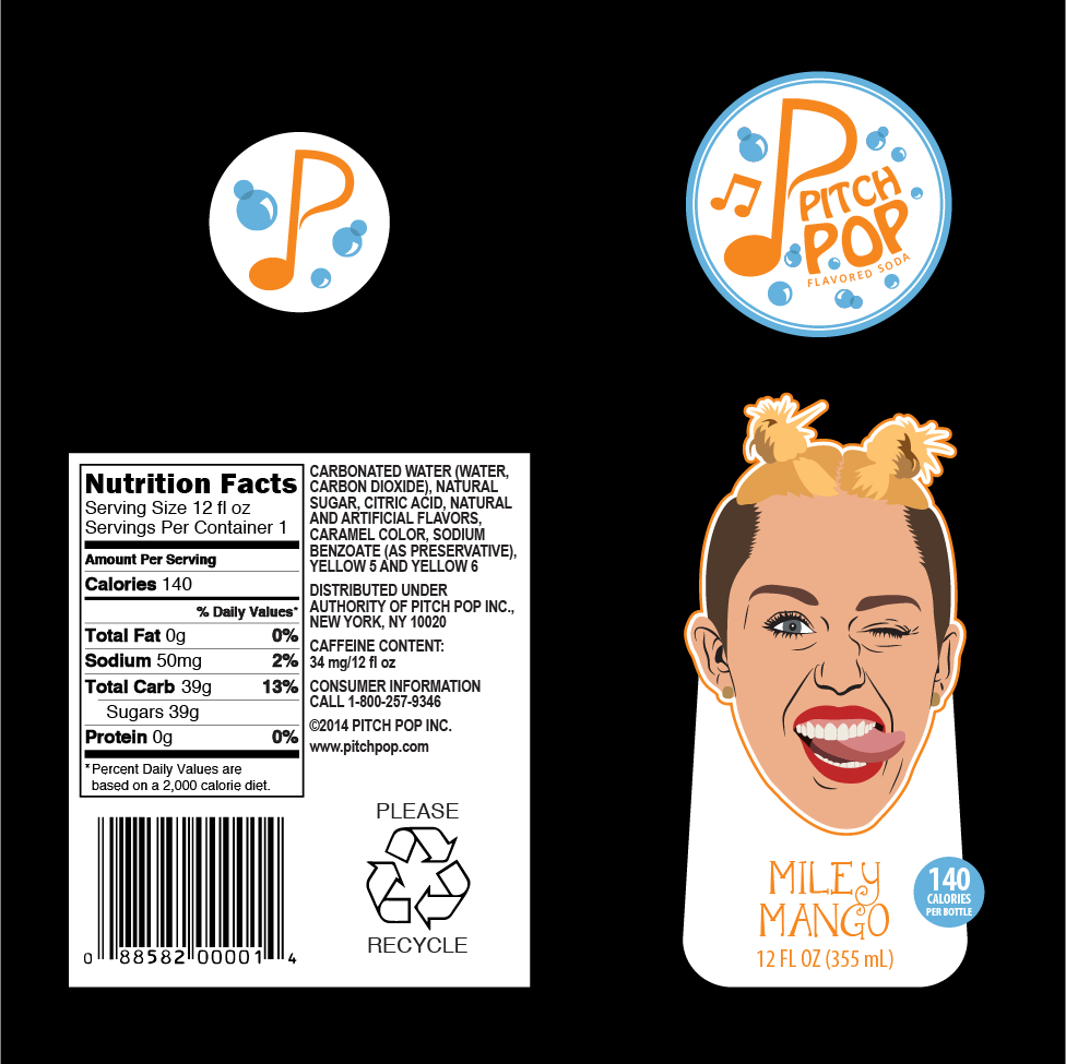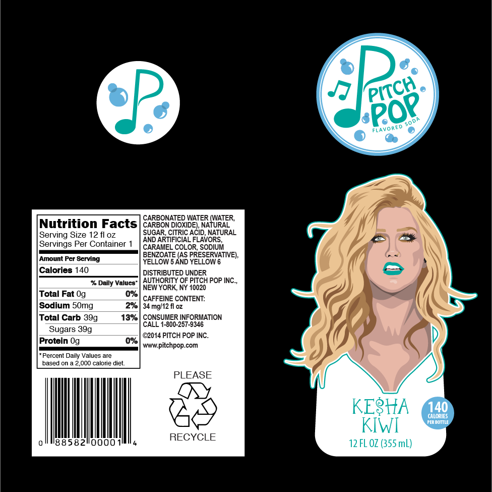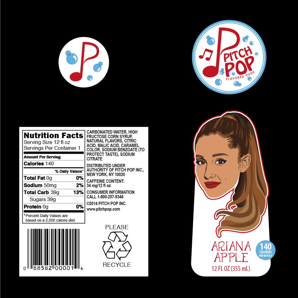 Pitch Pop flavored soda is a brand that I came up with for a student project. The project involved creating a logo, designing wireframes, and assembling the final product. Since music is a huge inspiration for me, the idea seemed to come naturally. The name “Pitch Pop” relates to music terminology and music genre, while “Pop” is also an alternative word for soda. Once a logo was made, I picked out artists that I personally like and made illustrations of their faces for the flavor labels. My goal in creating this package design was to cater to the music artist’s fan base. Today, music artists have several branded products for their fans. Pitch Pop plays with this idea of promotion by being a sort of collectible of an everyday product for fans to enjoy.